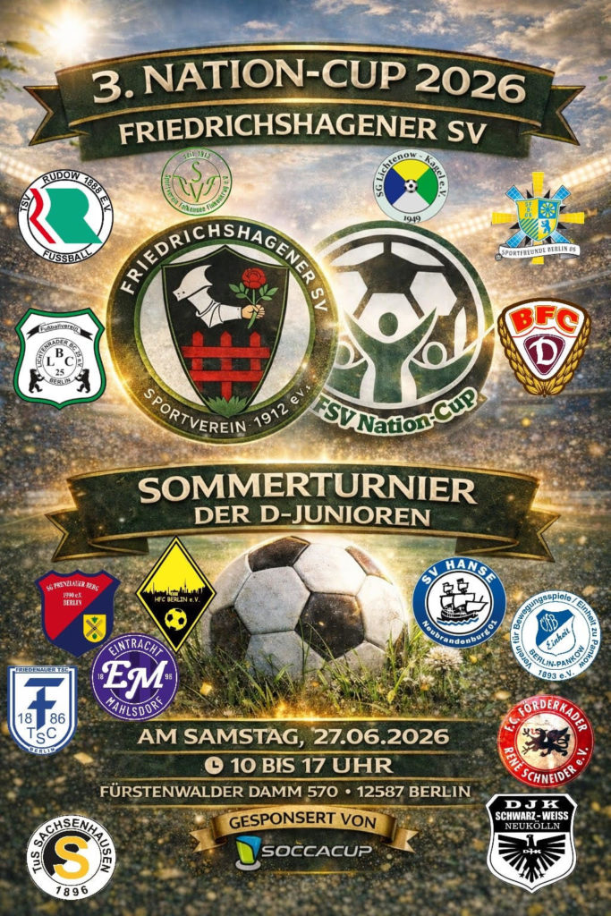 Am 27.06.2026 findet bei uns am Fürstenwalder Damm bereits zum dritten Mal der FSV-Nation Cup statt.